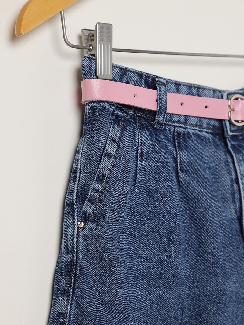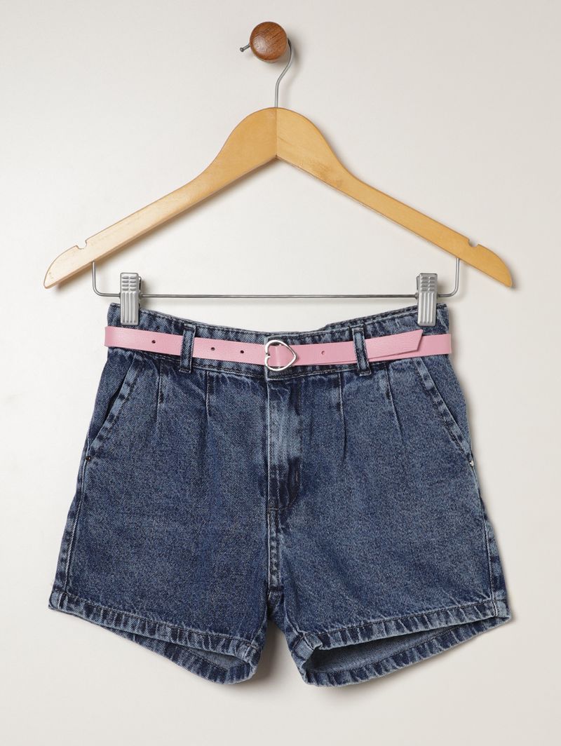Short juvenil para menina desenvolvido em jeans 100% algodão, que oferece resistência, conforto e caimento estruturado. Possui cós com passantes para cinto, fechamento frontal por botão de casa e zíper, além de bolsos frontais e posteriores funcionais e barra com acabamento simples, garantindo praticidade e estilo. A lavagem marmorizada confere um visual moderno e despojado, enquanto o cinto que acompanha a peça completa o look com um toque fashion. Ideal para compor produções casuais e confortáveis!\n\nTecido: Jeans\nComposição: 100% algodão
