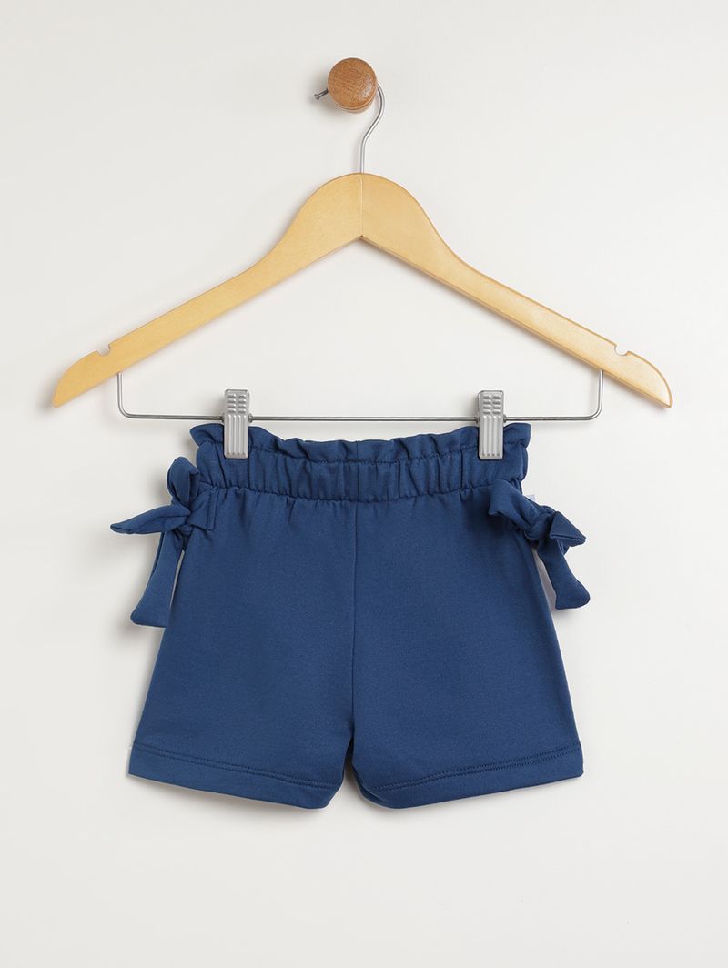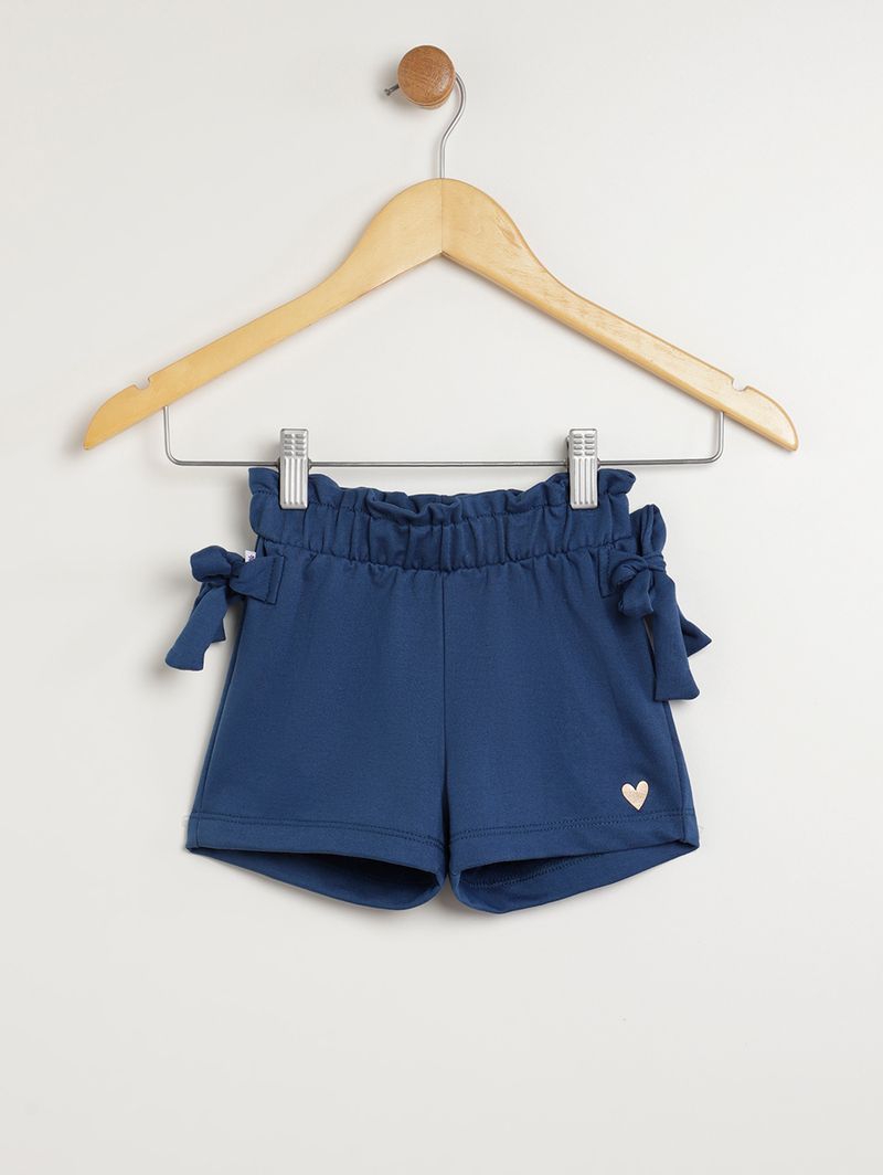 Short infantil para menina desenvolvido em moletinho, um tecido leve e confortável. O modelo apresenta cós elástico e barra com acabamento simples. O seu diferencial fica por conta de faixas para amarração nas laterais que deixam a peça mais delicada. Conforto e estilo em uma só peça: a escolha perfeita para acompanhar a energia e o charme das pequenas!\n\nTecido: Moletinho\nComposição: 50% algodão, 50% poliéster