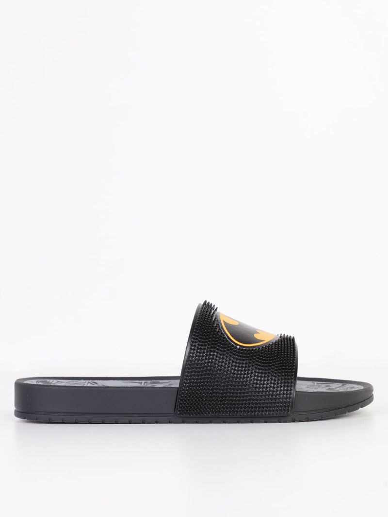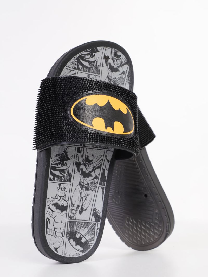 Chinelo juvenil para menino desenvolvido em material sintético de boa qualidade e durabilidade. O modelo slide É caracterizado por uma faixa grossa que garante segurança ao caminhar. Possui ainda palmilha anatômica e solado com frisos antiderrapantes. O seu diferencial fica por conta da estampa do personagem Batman na palmilha, a logo do personagem e efeito fluffy por toda a extensão da tira. Perfeito para o seu menino se divertir e viver grandes aventuras na companhia do seu herói favorito!\n\nMaterial: Sintético\nModelo: Slide