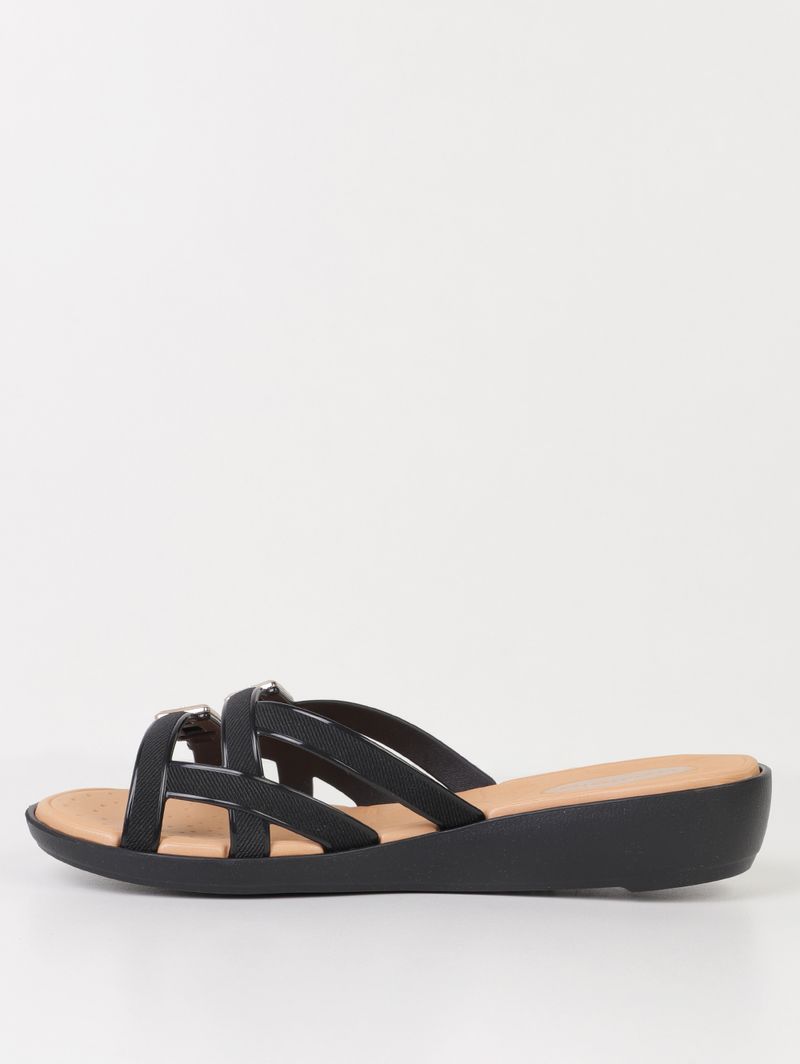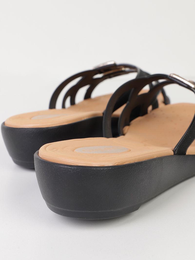 Tamanco feminino desenvolvido em material sintético de boa qualidade e durabilidade. Os tamancos são caracterizados por ter o salto inteiro em formato plataforma, além do cabedal aberto. O modelo possui bico arredondado, multitiras que conferem maior conforto, palmilha macia, salto de 3,5 cm na parte posterior, além de solado antiderrapante. O calçado que une praticidade e estilo em um só passo!