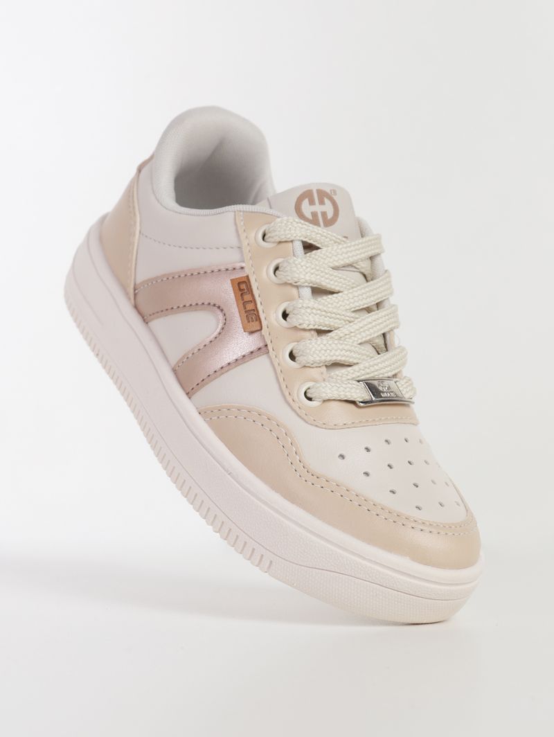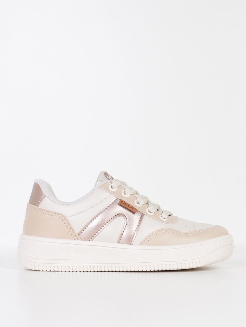 Tênis Casual Juvenil Para Menina - OFF WHITE/BEGE/DOURADO