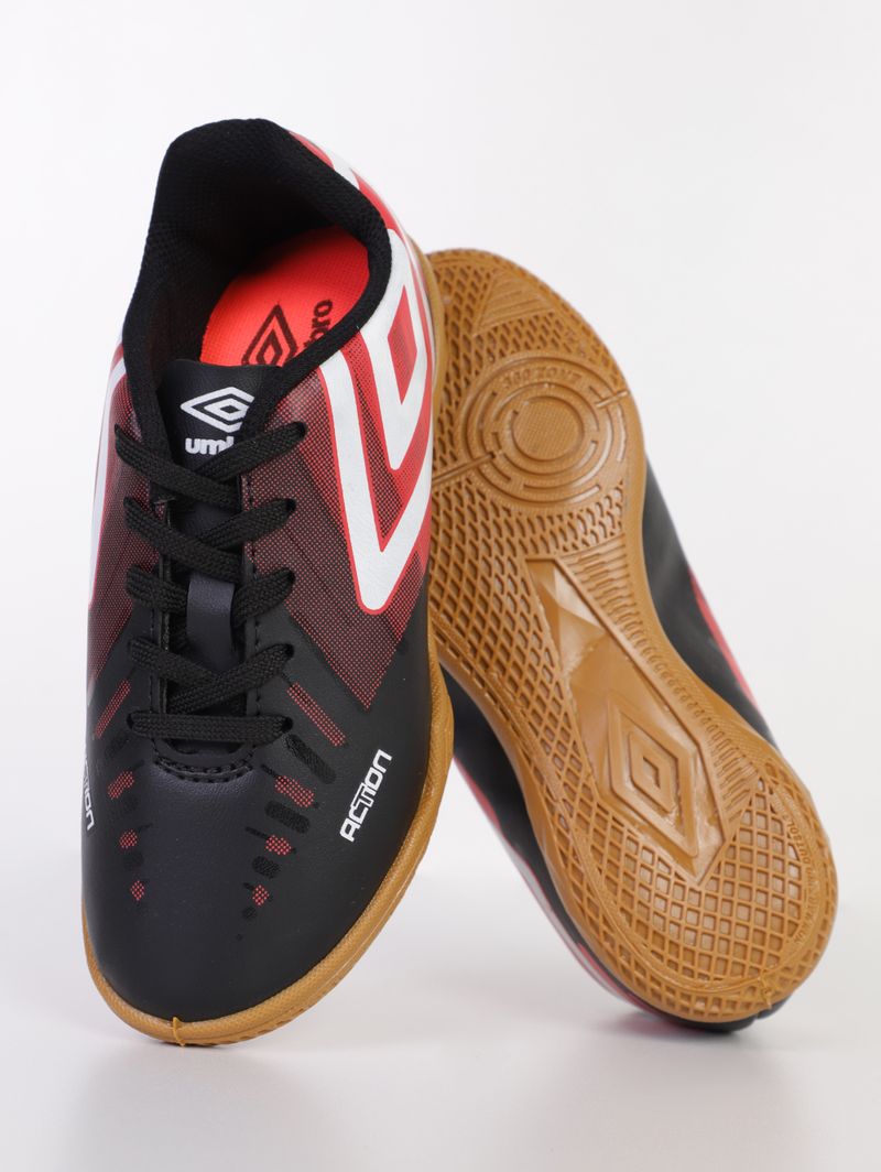 Tênis Futsal Umbro Juvenil Para Menino - PRETO/VERMELHO/BRANCO