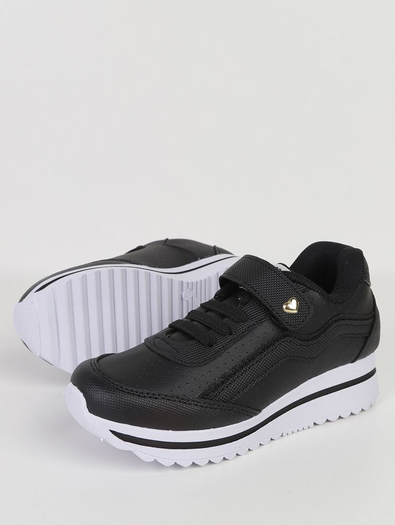 Tênis Gloss Com Velcro Brink Infantil Para Menina PRETO/BRANCO