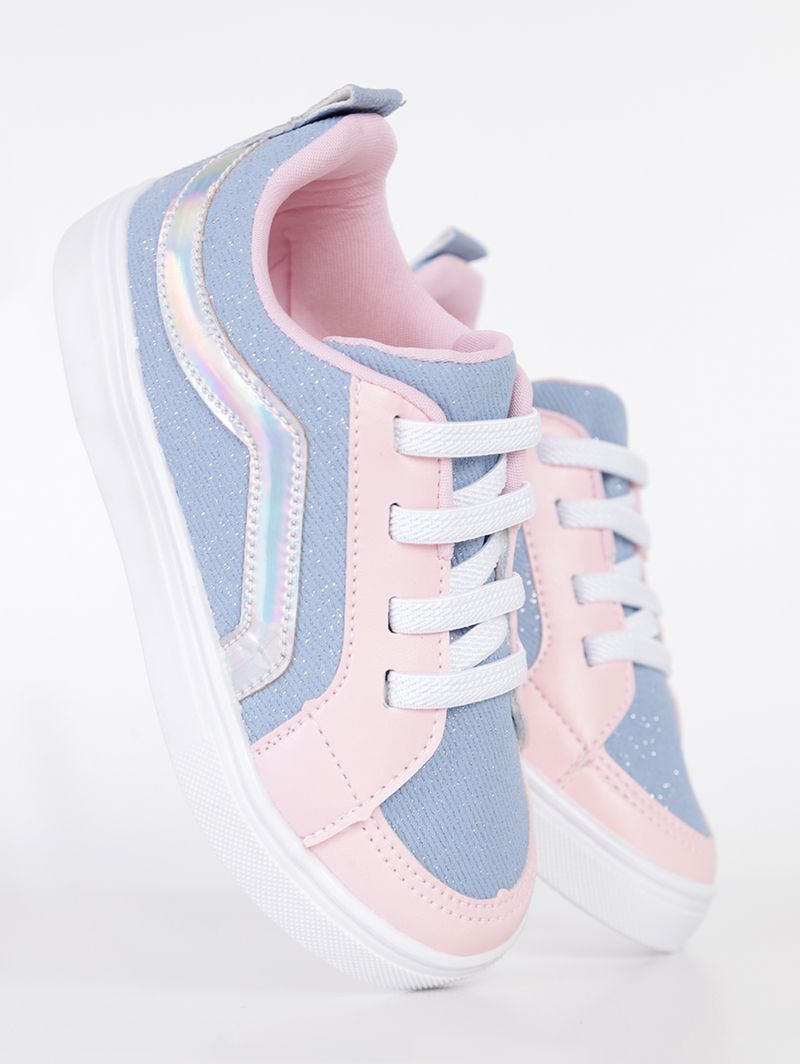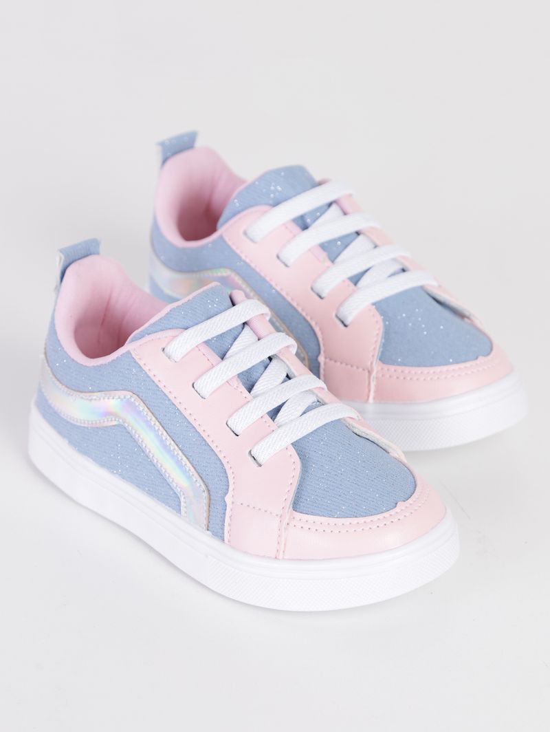 Tênis Jeans Infantil Para Menina - Azul/Rosa