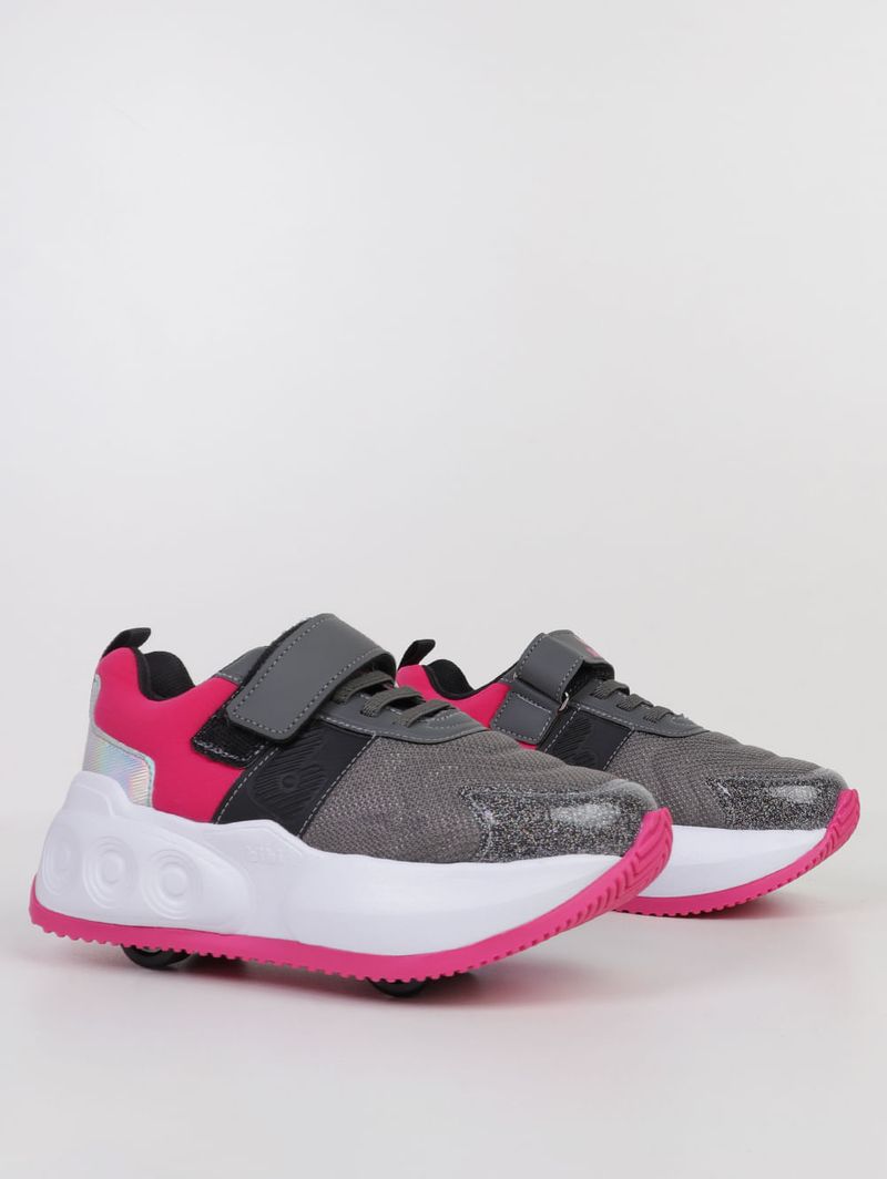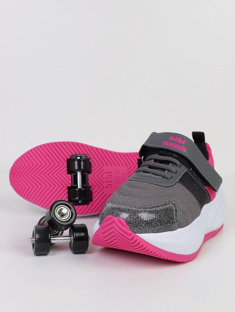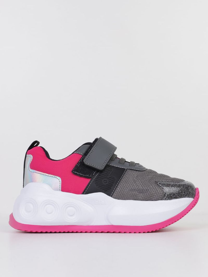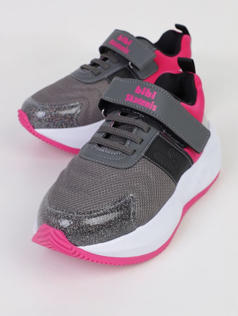 Tênis Skatenis Velcro Bibi Juvenil Para Menina- CINZA/PINK