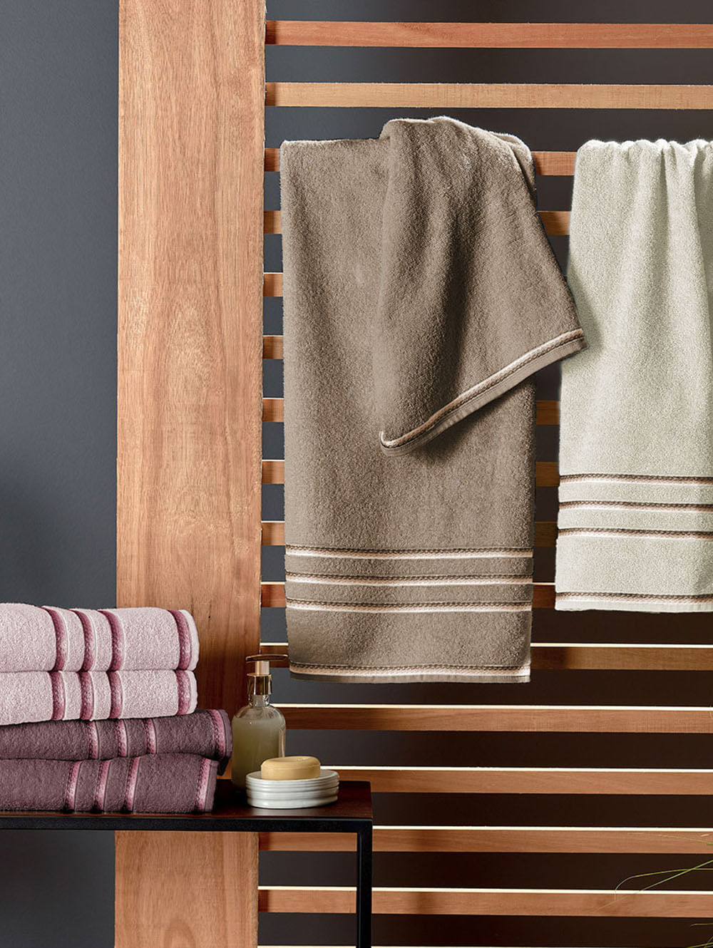 Toalha de rosto desenvolvida em tecido de algodão atoalhado, que garante toque macio. O modelo apresenta alta resistência, o que a torna ideal para o banheiro. O seu diferencial fica por conta de listras próximas à barra. Sinta a suavidade e a qualidade desta toalha que transforma seus momentos de cuidado em puro aconchego!