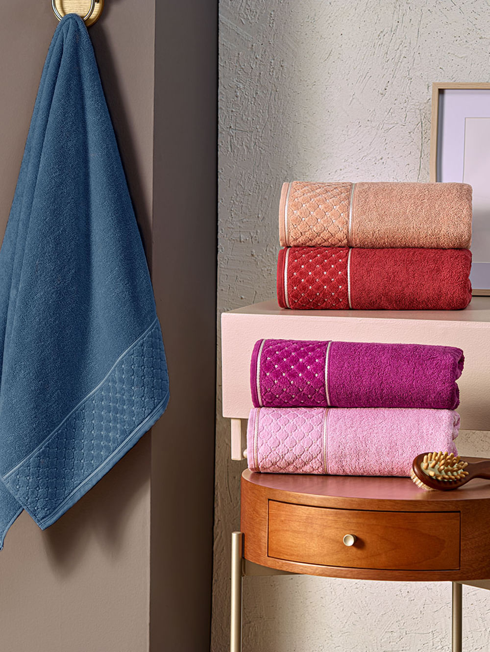 Toalha de rosto desenvolvida em tecido de algodão atoalhado, que garante toque macio. O modelo apresenta alta absorção e resistência, o que a torna ideal para o banheiro. O seu diferencial fica por conta da estampa próxima a barra. Leve mais conforto e praticidade para a sua rotina com esta toalha macia, absorvente e cheia de estilo!