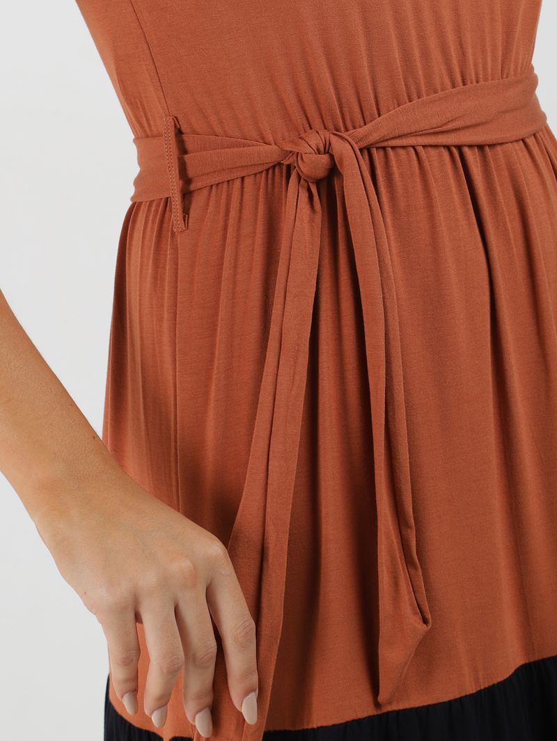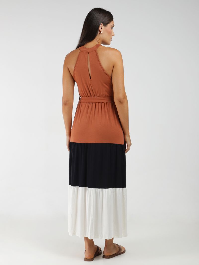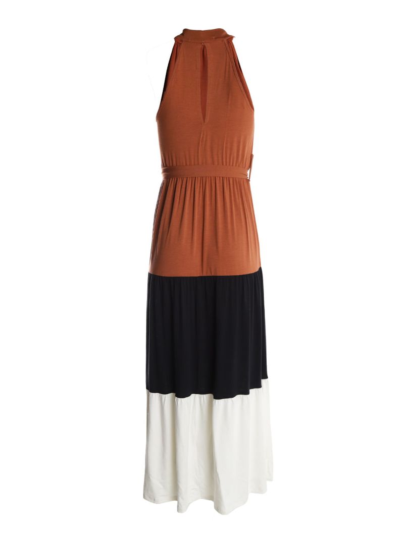 Vestido Com Amarração Bloco de Cores Feminino MARROM/OFF WHITE/PRETO