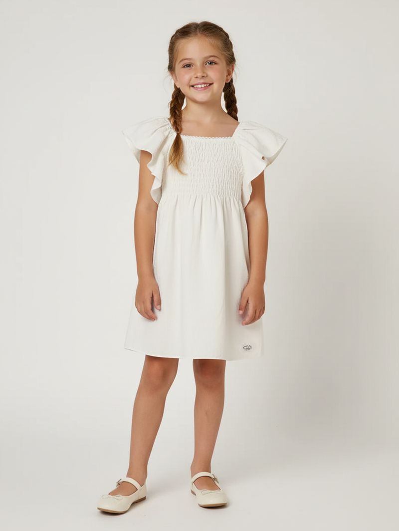 Vestido Com Lastex Infantil Para Menina - OFF WHITE