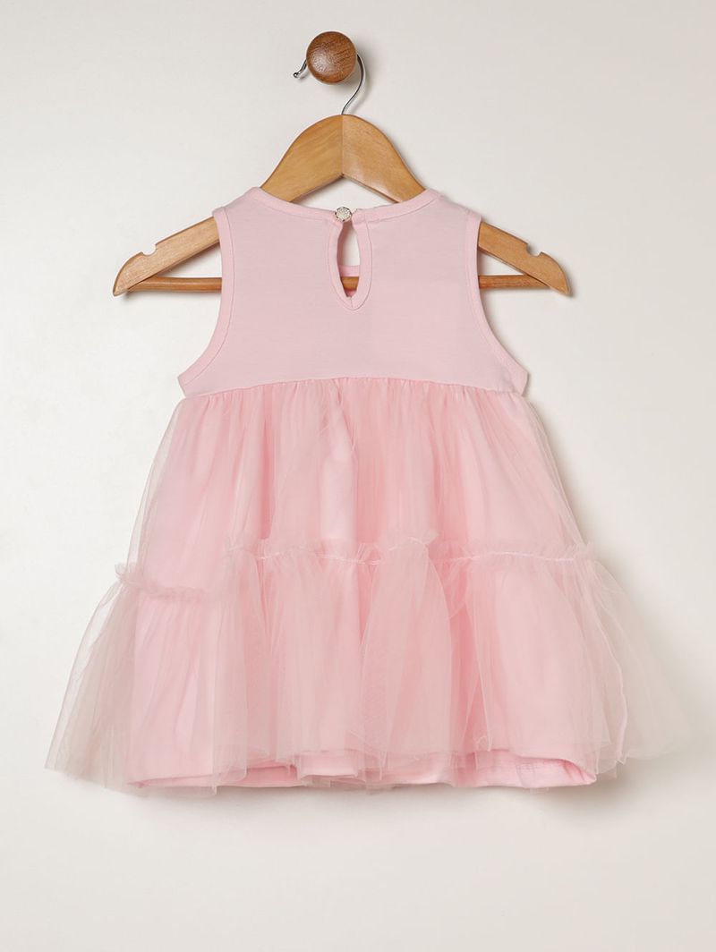 Vestido Cotton Leve Com Tule Infantil Para Bebê- ROSA CLARO