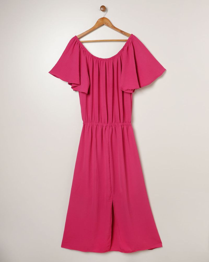 Vestido Longo Manga Ampla Plus Size Feminino ROSA