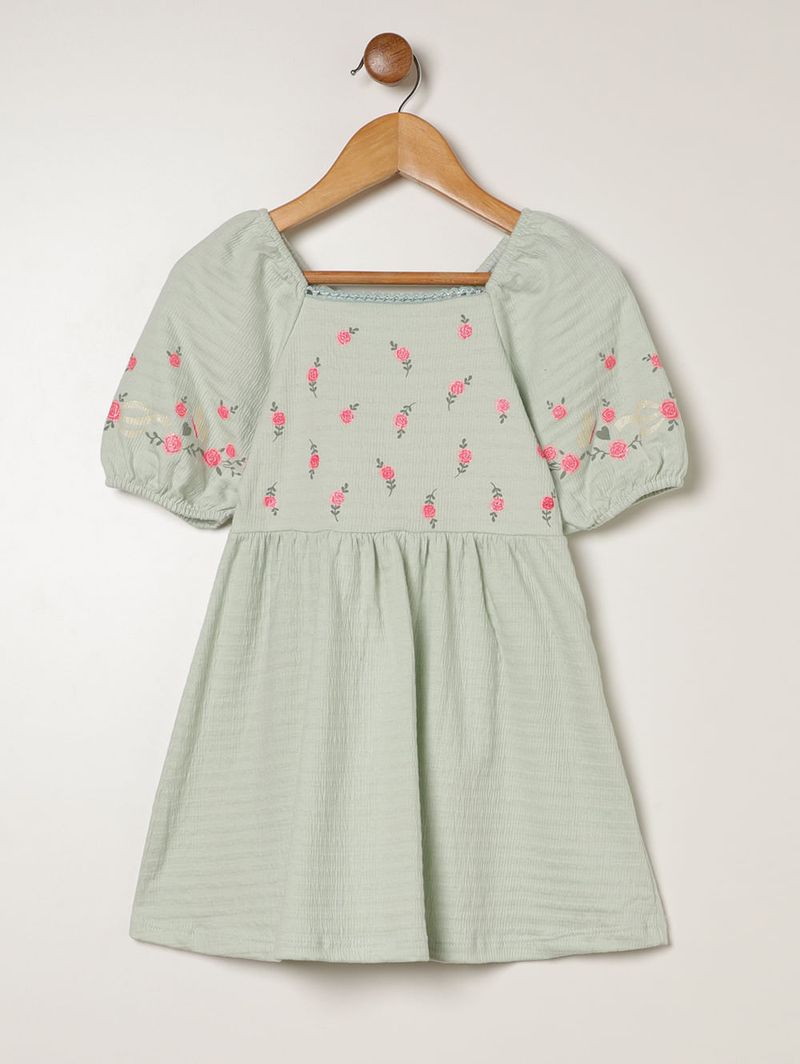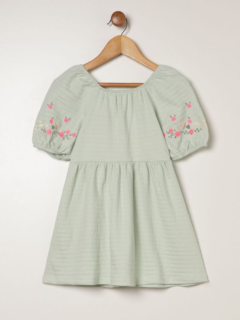Vestido Malha Texturizada Infantil Para Menina- VERDE