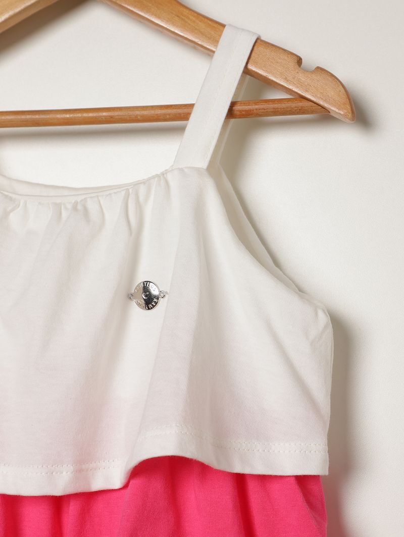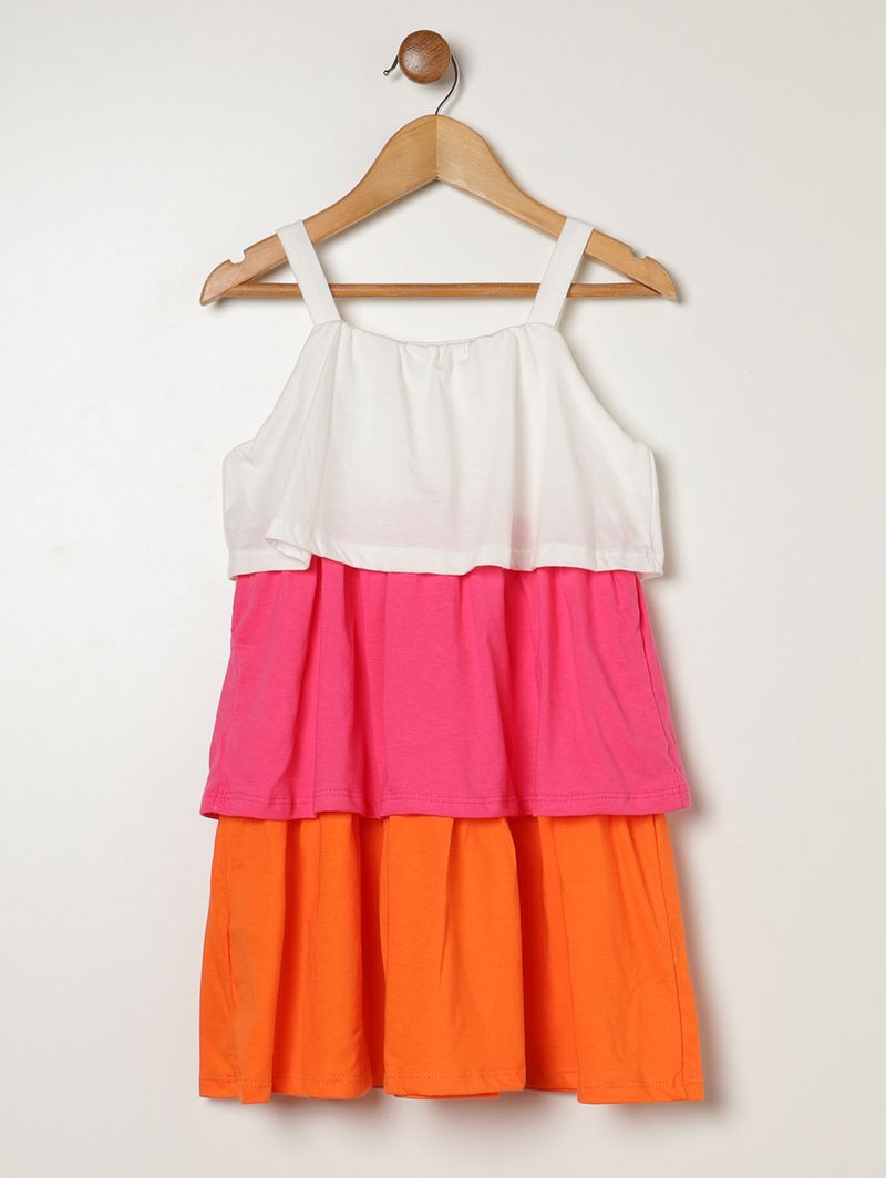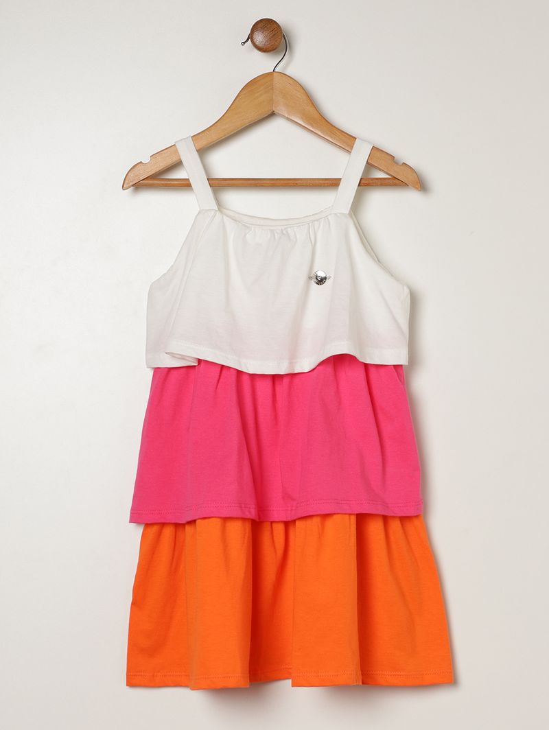 Vestido Meia Malha 3 Marias Infantil Para Menina- OFF WHITE/ROSA/LARANJA