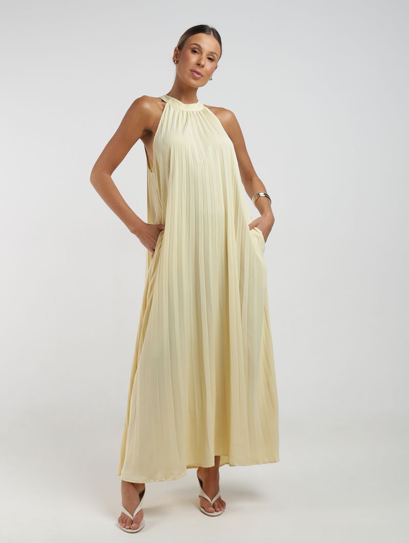 Vestido Plissado Longo Eagle Rock Feminino AMARELO