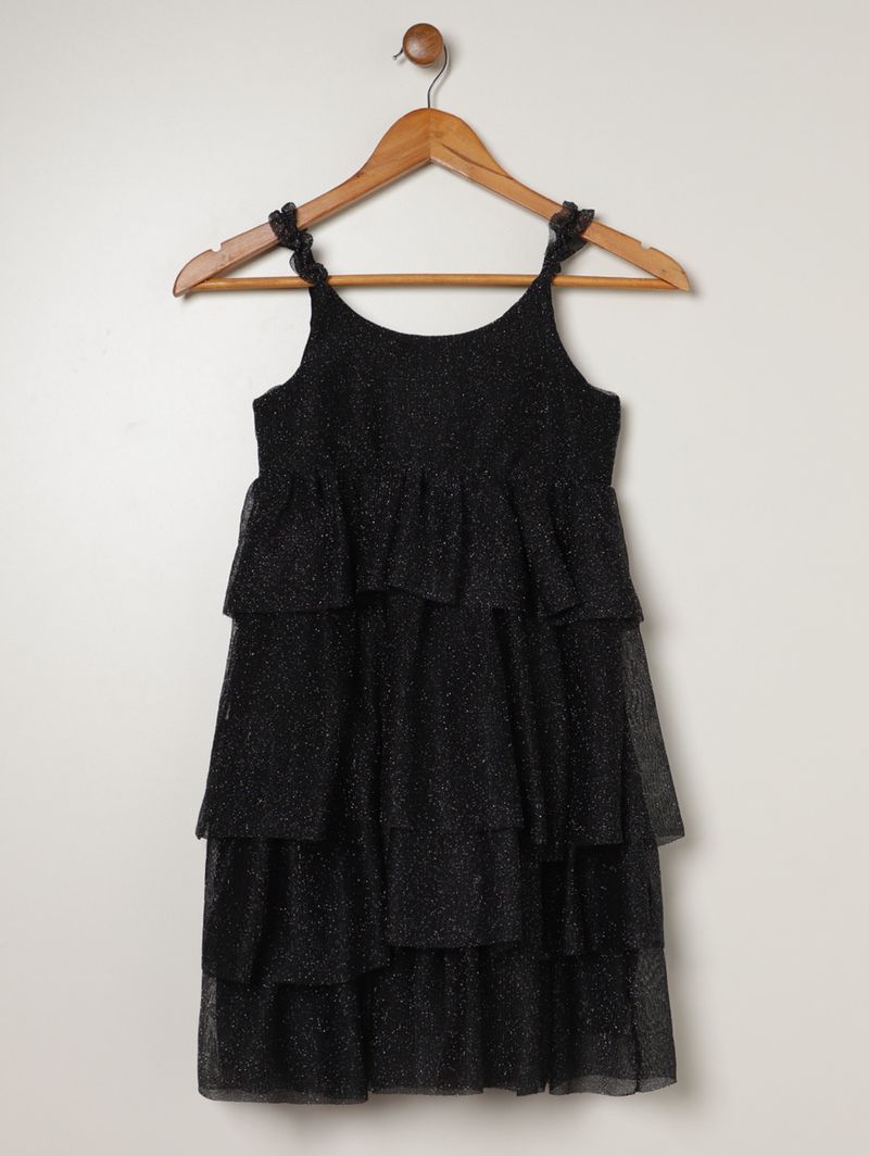 Vestido Tule Lurex Juvenil Para Menina - PRETO