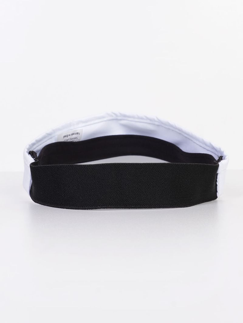 Viseira desenvolvida em tecido de poliéster . O modelo apresenta aba curvada, tira interna antitranspirante e faixa elástica que garante um ajuste perfeito na cabeça. O acessório perfeito para proteger o seu rosto dos raios solares e para dar um toque fashionista às suas produções!